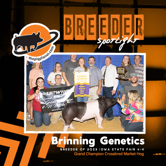 We Caught up with Shane Brinning of Brinning Genetics, breeder of the Grand Champion Market Hog, and the Grand Champion Purebred Gilt at the 2023 Iowa State Fair 4-H Show. Check out Brinning Genetics Breeder Spotlight below…