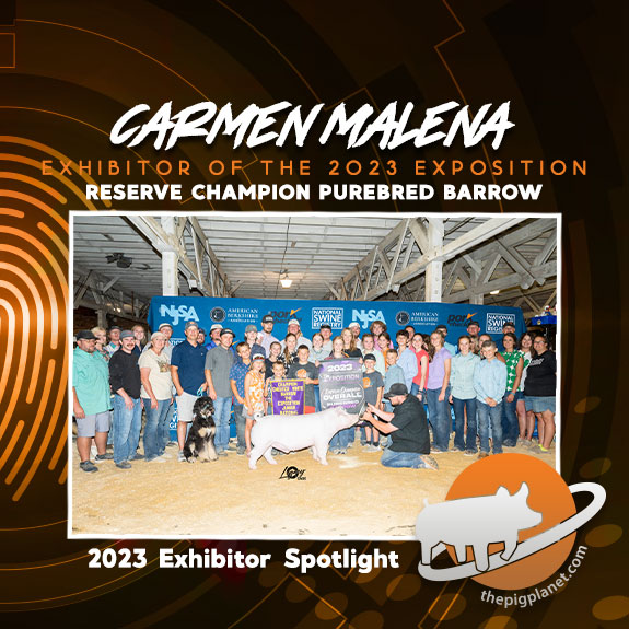 We Caught up with Ms. Carmen Malena, exhibitor of the Reserve Champion Purebred Barrow at The 2023 Exposition. Learn more about Carmen below…